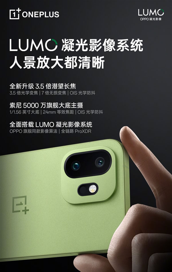 官方表示,一加 15T搭载的3.5倍潜望长焦镜头,配合LUMO凝光影像,带来经典人像、柔光人像、胶片风格三大核心模式,旨在让用户轻松拍出具有“鲜活生命力”的人像大片。