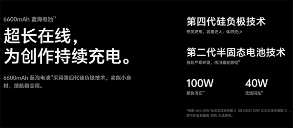 另外,在这个充电上支持100W有线闪充和40W无线闪充,可以很好地缓解续航焦虑,出门放心拍。