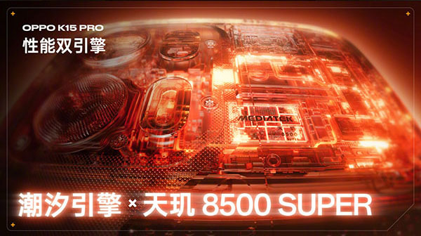 性能是OPPO K15 Pro的核心竞争力之一,该机搭载天玑8500SUPER处理器,采用台积电4nm先进工艺,CPU为1+3+4全大核架构,最高主频3.4GHz,GPU为ARM G720 MC8@1500MHz,峰值性能提升25%,功耗降低20%,并支持硬件级光线追踪技术与天玑倍帧技术,在高负载环境下能保持满帧运行,同时有效降低功耗。