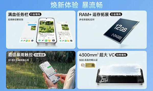 其它:300%扬声器大音量,200%听筒大音量,支持NFC(但不支持红外遥控),Wi-Fi 5(802.11ac),转子马达,蓝牙5.4,屏下光学短焦指纹,IP66+IP68+IP69K防尘防水,超抗摔金刚石架构,支持OPPO山海弱网通信,OPPO山海辅助定位,搭载ColorOS 16系统,提供高能户外模式。