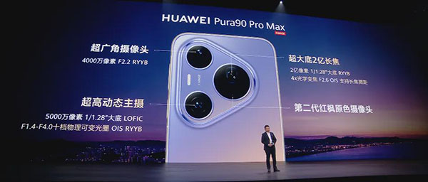 这款华为Pura90 Pro Max作为影像旗舰,配置直接拉满,后置四摄组合,包含5000万像素1/1.28大底主摄(支持F1.4-F4.0十档可变光圈,RYYB传感器)、4000万像素超广角、业界首发的2亿像素超大底长焦,有支持长焦微距,支持4倍光学变焦,3.5-10倍连续光学变焦,远景拍摄也能清晰锐利。