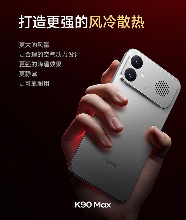 红米K90 Max正式发布了,作为K90系列新成员,它的定位甚至高于K系列至尊版,看似扬声器的区域,内置了目前手机行业尺寸最大的风扇,官方将其定义为游戏性能旗舰,搭载天玑9500和独显D2双芯组合,那它的配置上如何呢,下面带大家来看看相关的参数介绍吧。