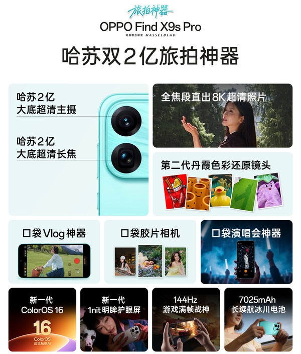 全新旅拍神器OPPO Find X9s Pro,这款手机带来了1.1mm窄边框设计,整机厚度8.4mm,重量为198克,并配备了天玑9500处理器和7025mAh大容量电池,那在通信方面,该机有支持卫星消息或通话功能吗,来看看相关的介绍吧。