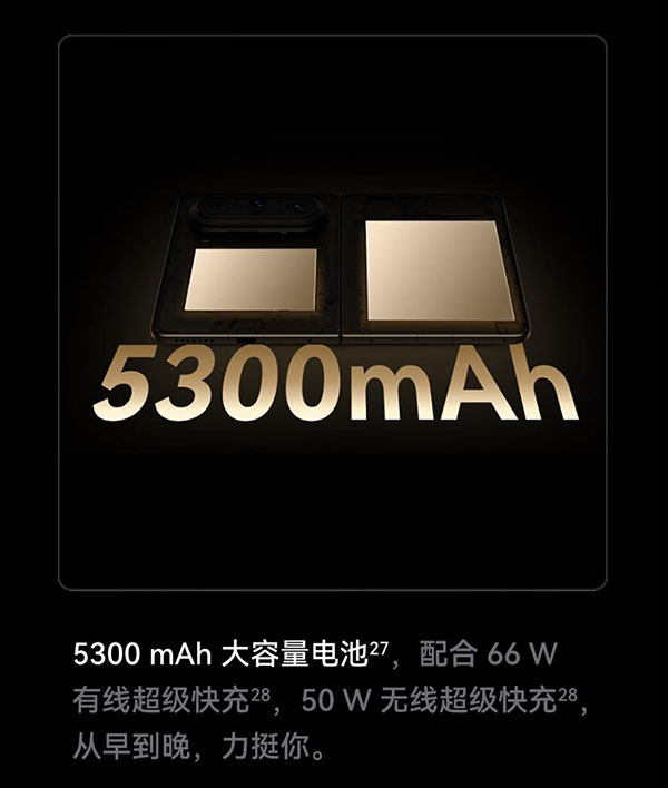 续航方面,华为Pura X Max搭载了5300mAh电池+66W有线+50W无线的充电组合,另外它还支持无线反向充电。