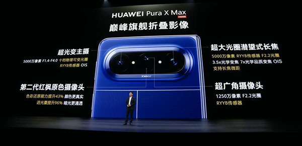 是,华为Pura X Max配置了一个5000万像素的潜望式长焦,并且支持3.5倍光学变焦,7倍光学品质变焦。