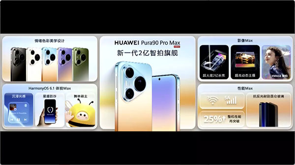 华为Pura90 Pro Max屏幕参数:尺寸是6.9英寸,分辨率是2880×1308(属于1.5K级别),OLED材质直屏,支持120Hz刷新率(1-120Hz LTPO),300Hz触控采样率,1440Hz高频PWM调光,460ppi,10.7亿色,P3广色域,首反光耐刮昆仑玻璃(宣称降低70%屏幕反光+16倍耐刮+25倍耐摔)。