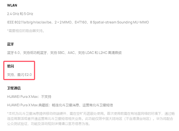 支持,华为Pura X Max配置的是星闪E2.0。