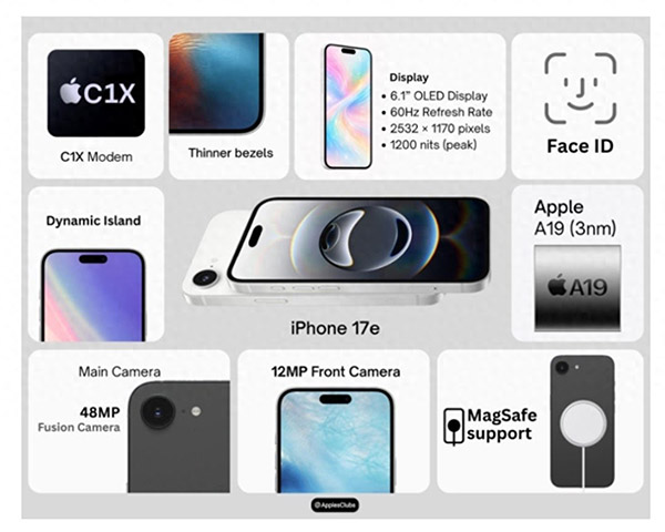 配置层面,iPhone 17e将搭载3nm工艺的AppleA19芯片,配备6.1英寸OLED屏幕(60Hz刷新率,不支持高刷)并支持FaceID。