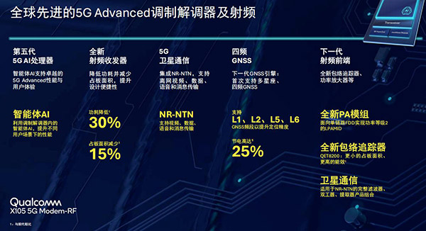 具体来看,在硬件与软件层面都采用了全新架构的高通X105具有诸多亮点: