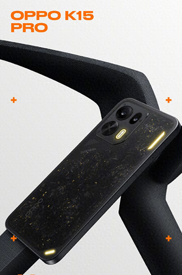 OPPO官方昨天在微博表示,OPPO K15 Pro系列手机的“金色传说”配色将首发航天级锻造碳工艺,随机排列真实碳纤维,还带有手工点缀的闪光金箔,号称“每一款都独一无二”。